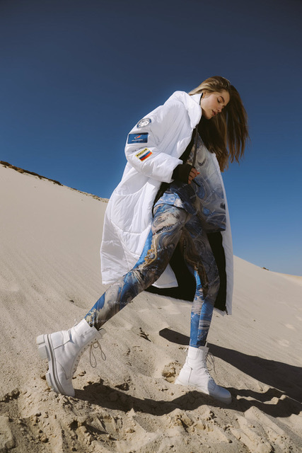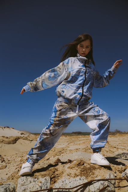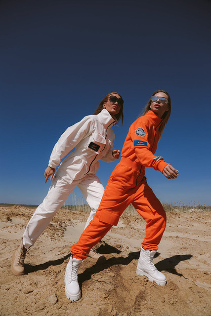 «При создании коллекции мы, конечно, вдохновлялись космосом. Например, комбинезон стал современным прочтением экипировки первого человека, совершившего полет в космическое пространство – Юрия Гагарина, а куртка-скафандр – настоящий образец Высокой моды – является уникальным изделием ручной работы, созданным из эксклюзивных тканей и материалов», – комментирует представитель бренда DNK.Russia.