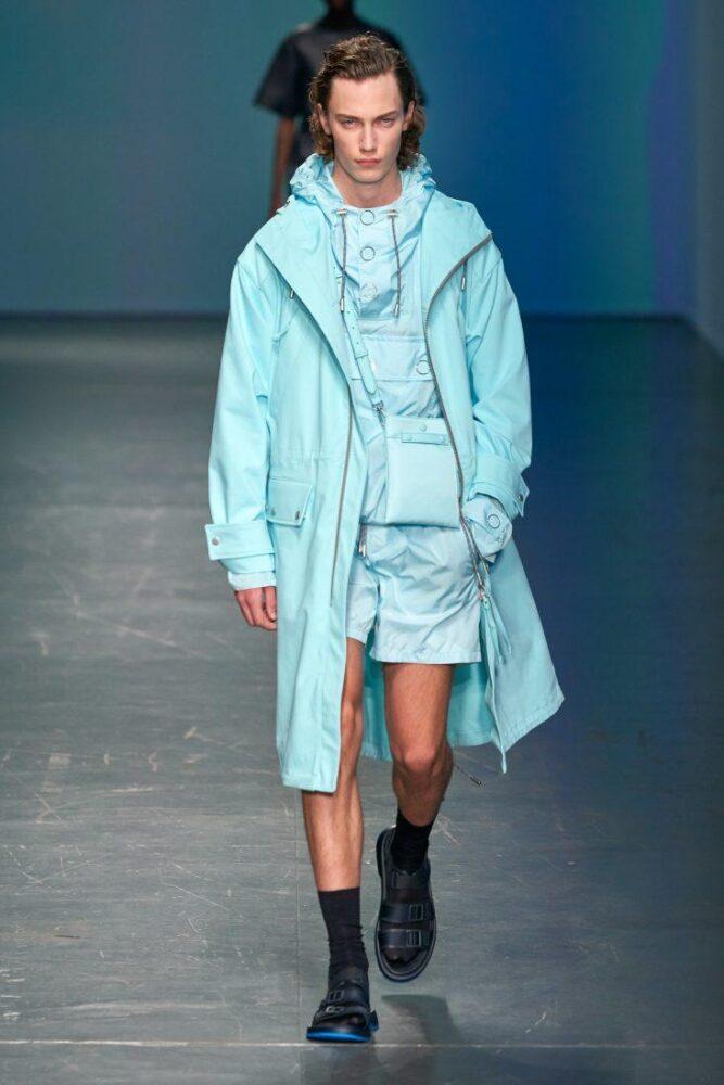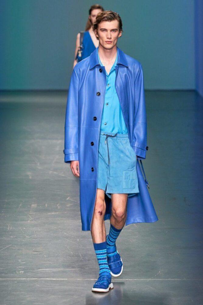 Писком моды в грядущем сезоне станет ношение шорт под длинный плащ нараспашку в тандеме с высокими носками, как у Hugo Boss.