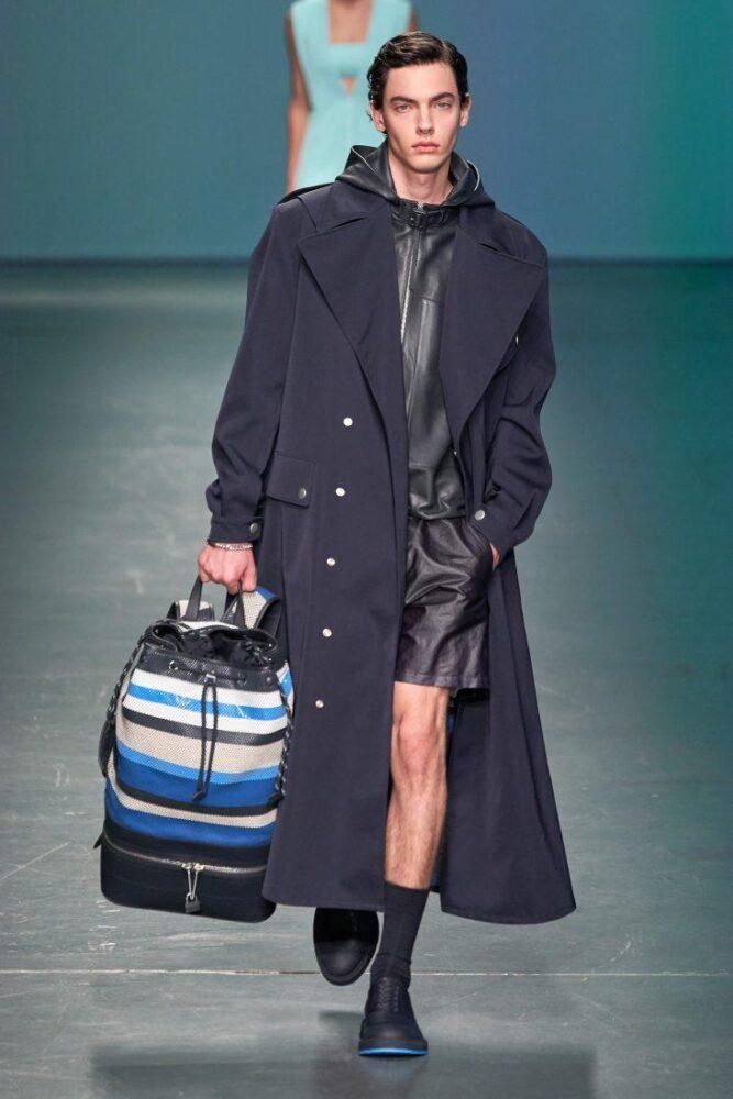 Среди сумок наиболее популярными будут маленькие модели (на шею, пояс или через плечо), а также габаритные ручные дорожные сумки, придающие мужскому образу особой брутальности. Также в тренде будут сумки цилиндрической формы на плечо.