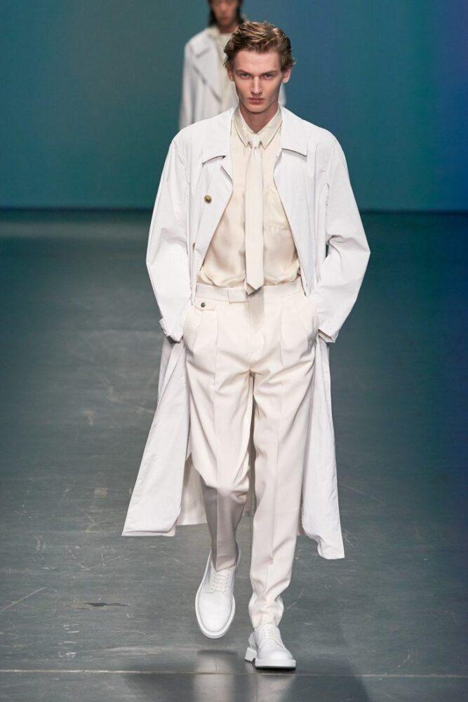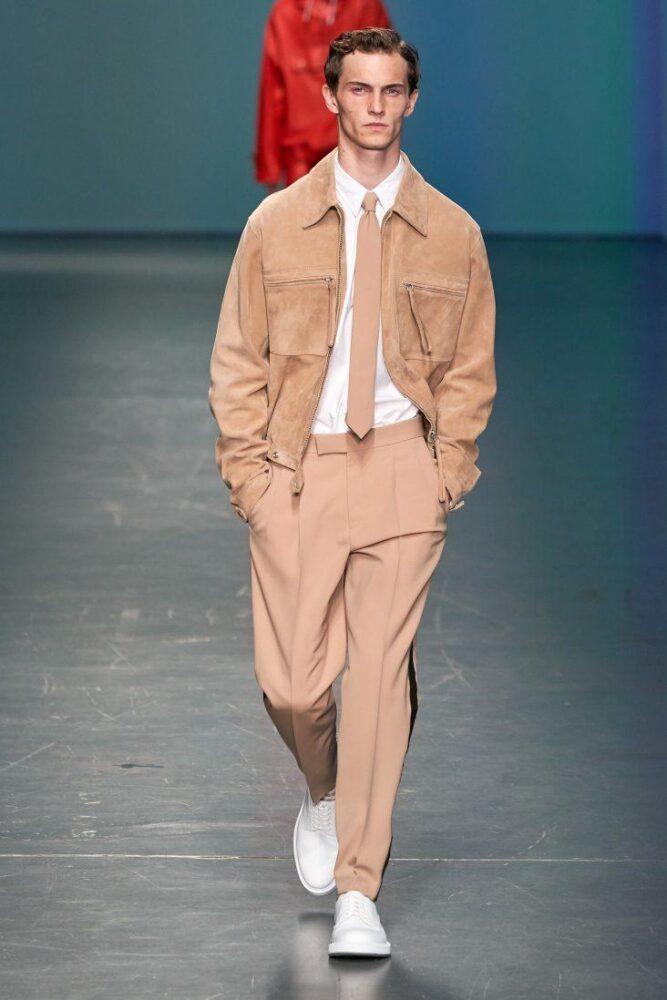 Сентябрьская неделя моды в Милане продолжила тенденции, предложенные модельерами еще в июне. Относительно цветовой гаммы фаворитами остаются голубой, синий, черный и белый. Также модными в весенне-летнем сезоне 2020 г. будут бежевый, светло-желтый, оранжевый, алый и зеленый цвета. Наиболее полно палитру топовых в следующем сезоне оттенков на миланской неделе моды продемонстрировал Hugo Boss. Под костюм Модный дом предлагает носить узкий галстук — один из трендовых аксессуаров в сезоне 2020 г.