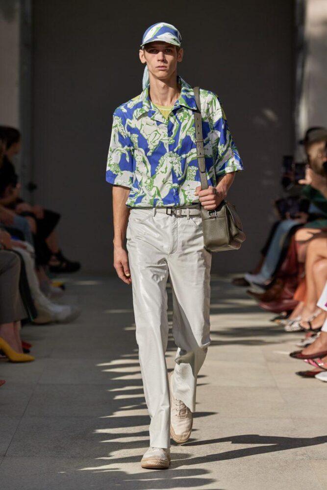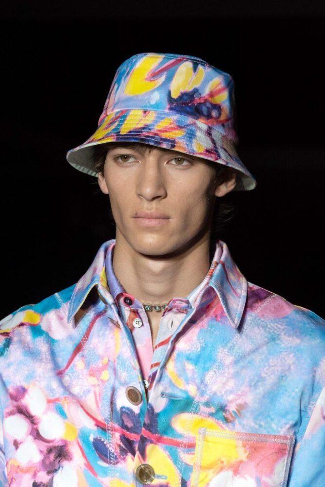 Salvatore Ferragamo предлагает мужчинам вместо бейсболок косынки с козырьком, которые также можно носить на плечах, как пионерский галстук.