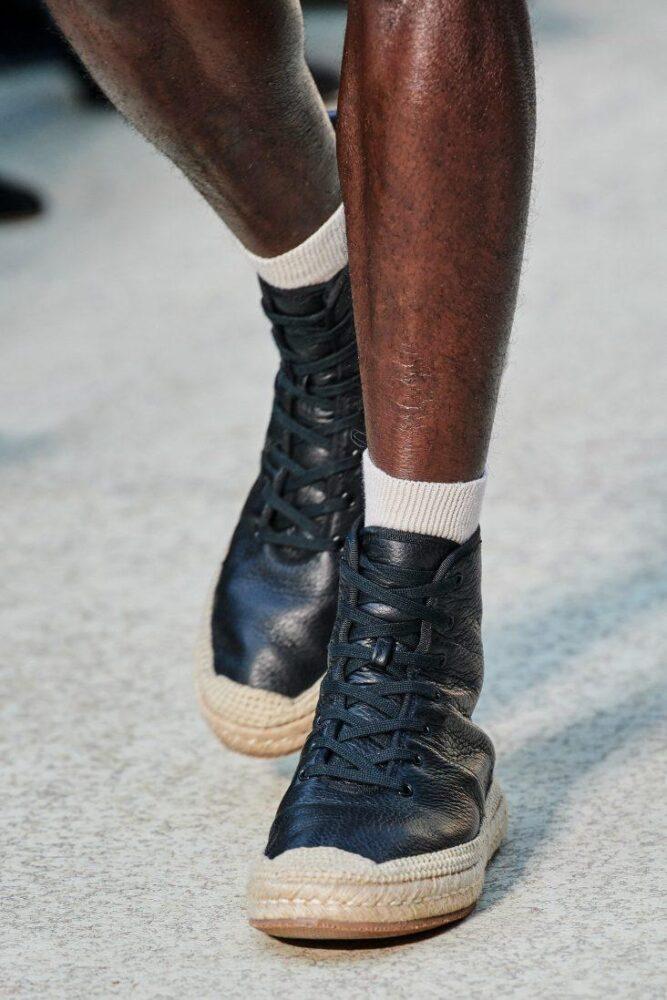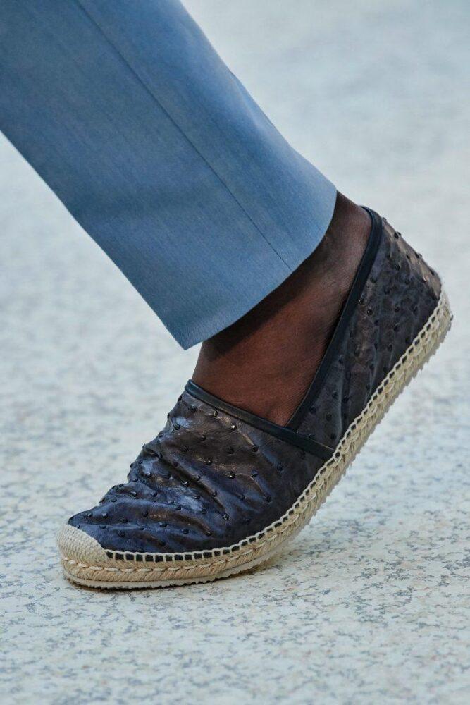 Salvatore Ferragamo представил перфорированные кожаные эспадрильи и высокие модели на шнуровке, в т. ч. текстильные.