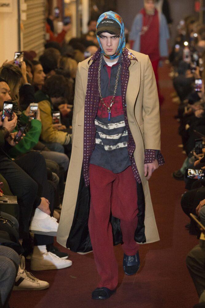 Возможно, именно в подражание королевскому образу бренд Linder предложил мужчинам в сезоне осень-зима 2019/2020 не только цветной платок, но и тиару. Да уж, как говорила Алиса в Стране чудес: каждый раз все страннее и страннее.