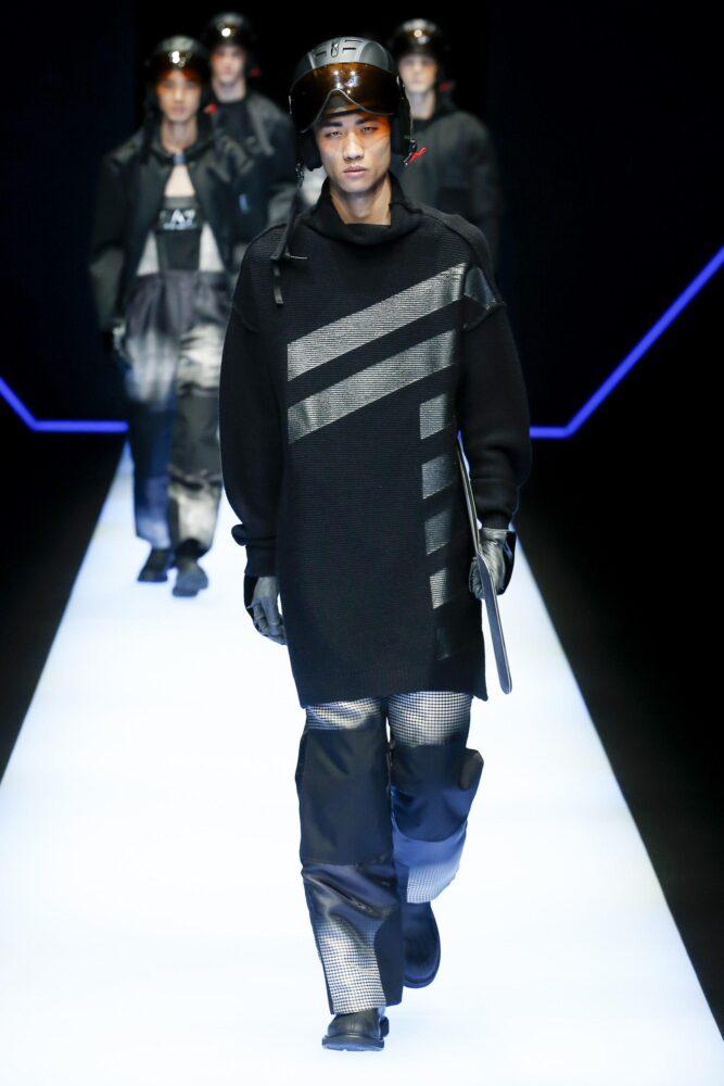 Основную палитру составляют синий, серый и чёрный. В луках присутствует монохромность, плавный переход от одного оттенка к другому. Осень—зима 2019—2020 в линейке известного бренда реализовалась в прямых, приталенных силуэтах.