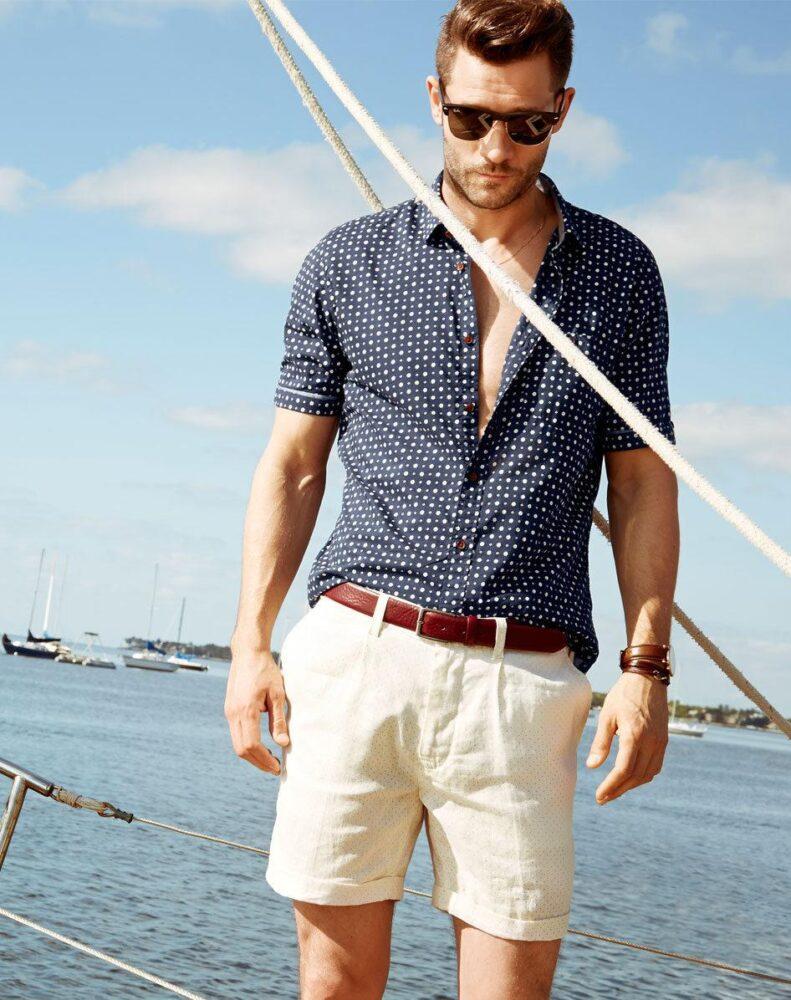 Один нюанс. Если ты небольшого роста или обладатель внушительного пуза – шорты чинос не для тебя. Такие шорты пойдут мужчинам с длинными ногами и спортивной фигурой. Из обуви выбери лоферы, мокасины, топсайдеры, кроссовки или кеды. Чинос лучше выбирать нейтральной однотонной гаммы, так как сами по себе они будут привлекать внимание к твоим ногам и коленям, яркие тона могут выглядеть вызывающе.