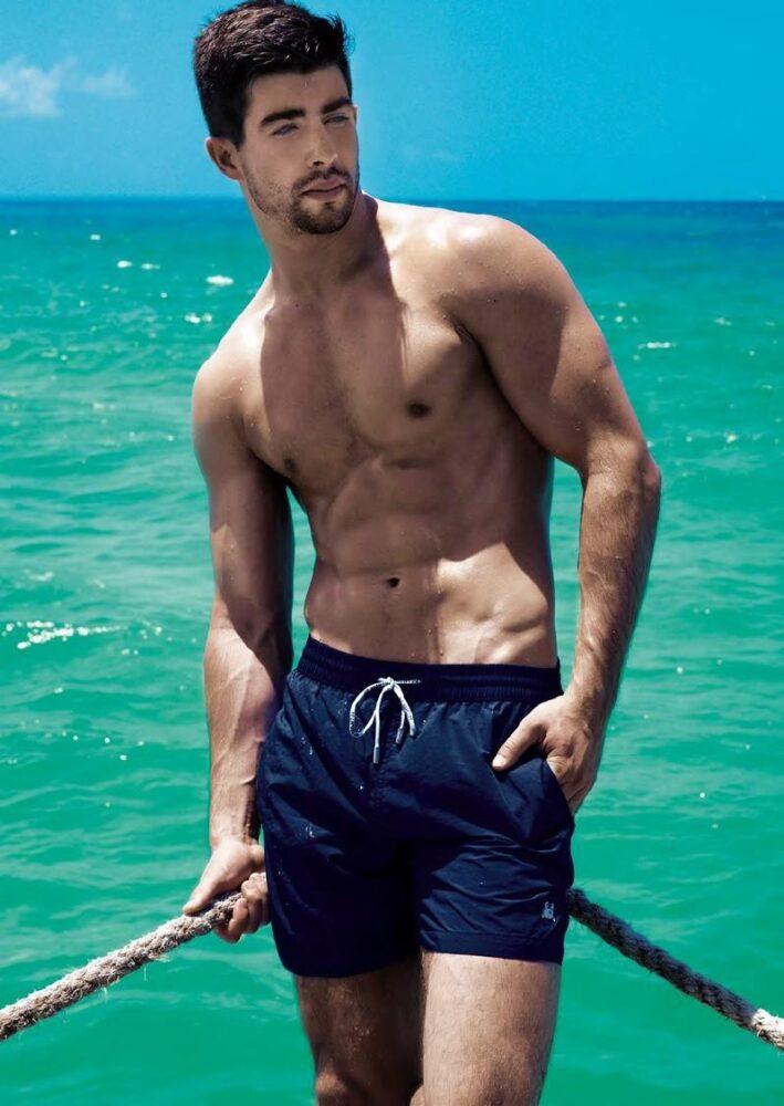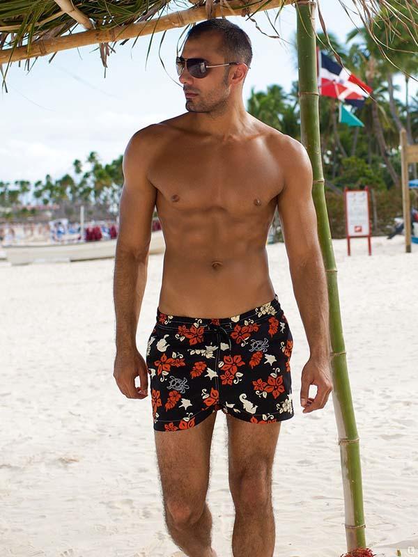 Подойдут широкие, свободные шорты чуть ниже колена. Посмотри фильм «Донни Браско» в той части, где вся итальянская мафия поехала во Флориду делать дела и решила сходить на пляж. Отдыхают у моря серьёзные мужчины с нестандартными фигурами, и именно такие шорты дали возможность выглядеть им брутально и сексуально.